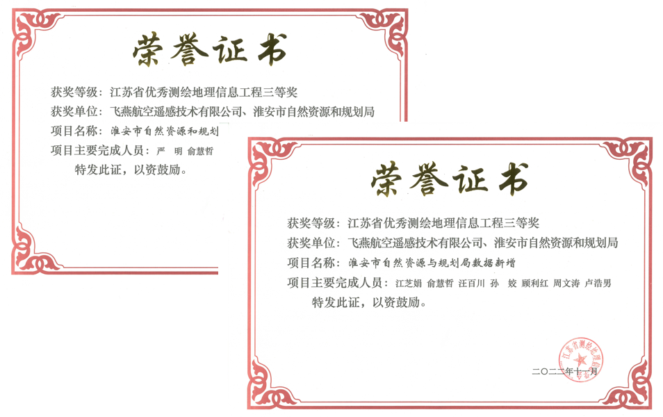 在智慧城市建設(shè)發(fā)展的進(jìn)程中,淮安市自然資源和規(guī)劃局為滿足淮安市1:1000正射影像圖數(shù)據(jù)更新、基礎(chǔ)地理信息數(shù)據(jù)更新,為智慧淮安時(shí)空大數(shù)據(jù)與云平臺建設(shè)奠定扎實(shí)的空間數(shù)據(jù)基礎(chǔ),在2021年組織了招標(biāo)。飛燕遙感有幸承接了該項(xiàng)目,并在2022年江蘇省優(yōu)秀測繪地理信息工程獎中獲得三等獎。