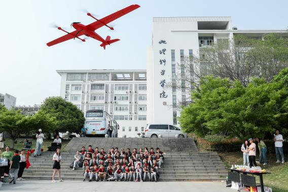 接著,飛燕遙感的雷存越主任與航攝員們?yōu)橥瑢W(xué)們進(jìn)行了無(wú)人機(jī)航拍展示。在地科院前廣場(chǎng),飛燕遙感雷存越主任向同學(xué)們講解了無(wú)人機(jī)基礎(chǔ)知識(shí),包括無(wú)人機(jī)的基本結(jié)構(gòu)、分類以及在地理方面的應(yīng)用等,為同學(xué)們揭開(kāi)了無(wú)人機(jī)的神秘面紗。在航攝員們的操作下,一架架形態(tài)各異的無(wú)人機(jī)依次騰空而起,表演了空中懸停、急速升空等操作,精彩的表演贏得了同學(xué)們陣陣驚嘆和熱烈掌聲。