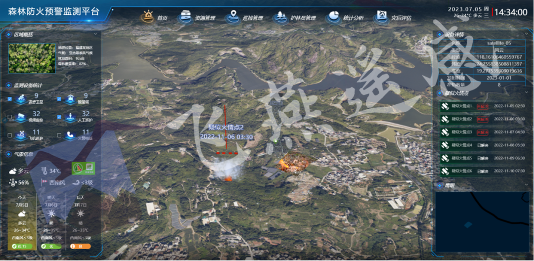 以飛燕Swift 4D為底座,利用應(yīng)用遙感技術(shù)、GIS技術(shù)、三維技術(shù)、大數(shù)據(jù)技術(shù)、人工智能等技術(shù),融合林區(qū)實景三維數(shù)據(jù)、地理信息數(shù)據(jù),監(jiān)測數(shù)據(jù),森林資源、林業(yè)設(shè)施設(shè)備、林業(yè)物資庫、巡護(hù)管護(hù)人員等多源數(shù)據(jù),構(gòu)建林業(yè)監(jiān)測一張網(wǎng)、森火全周期管理等能力,有效提升林區(qū)主管部門對火情監(jiān)測預(yù)警、應(yīng)急調(diào)度等科學(xué)決策能力水平。