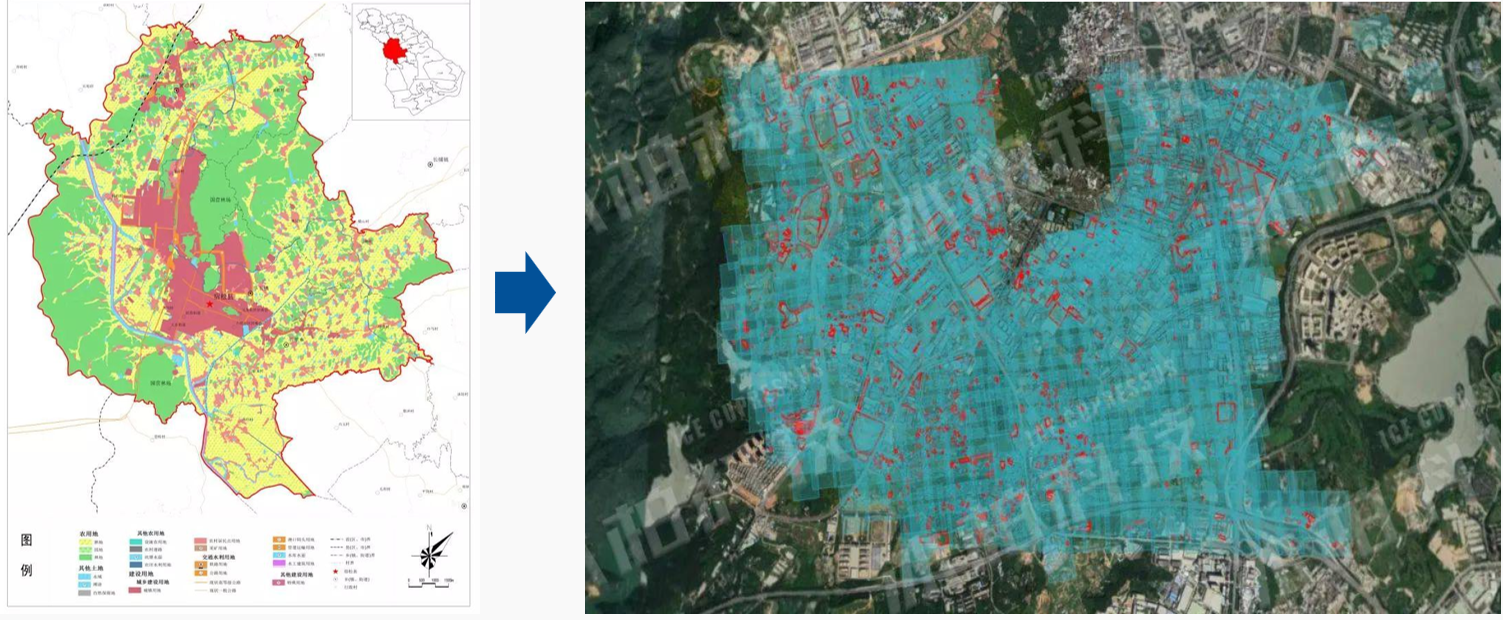 根據(jù)自然資源部門提供的土地利用現(xiàn)狀 、 永久基本農(nóng)田現(xiàn)狀 、 耕地現(xiàn)狀等土地規(guī)劃數(shù)據(jù),通過時(shí)空大數(shù)據(jù)平臺(tái)進(jìn)行圖斑判讀 、 分析和篩選 , 形成疑似 “ 兩違 ” 圖斑。