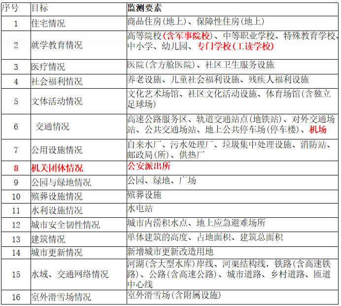 全域范圍采集的內容包括:高等院校(含軍事院校)、中等職業學校、特殊教育學校、專門學校(工讀學校),方艙醫院,自來水廠、污水處理廠、供熱廠,殯葬設施,軌道交通站點(地鐵站)、高速公路服務區、機場,水電站,河湖(含大型水庫)岸線、河渠結構線,鐵路(含高速鐵路)、公路(含高速公路)、城市道路、鄉村道路中心線,室外滑雪場(含附屬設施)。