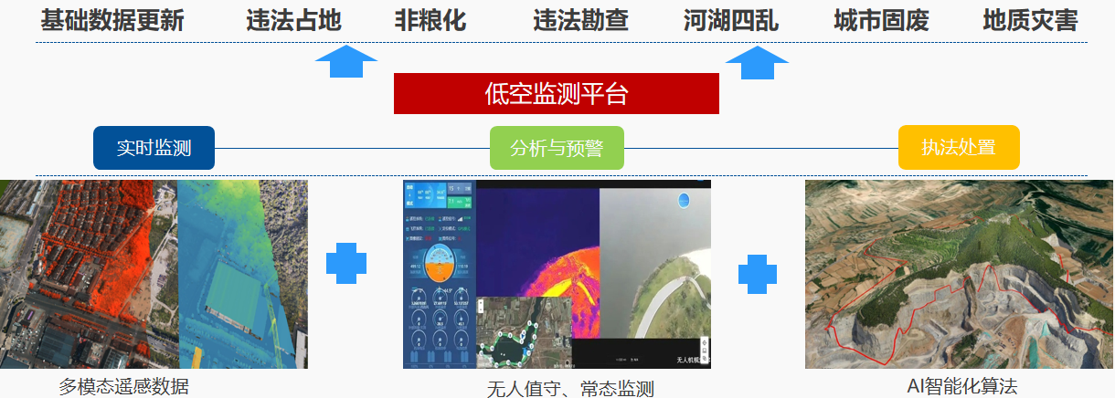依托豐富的項目經驗與技術積累,飛燕遙感明確實景三維高質量、可持續發展與應用,離不開大范圍、多模態、高效率、可持續的數據獲取與處理體系,在自主研發8.8億像素AIMS?多模態航攝儀的基礎上,再次自主研發了遠瞰?Farsight大型低空無人值守監測系統。不僅可以同步采集正射、傾斜/全景、點云、高光譜以及熱紅外影像,構建低空遙感信息數據“全景化”,還可以憑借其低成本、高續航的優勢,實現基于少量機庫的區域化全覆蓋。依托自主研發“玄鳥”AI算法庫,構建城市規建管“智慧腦”,實現變化圖斑數據智能化提取,分析與預警。
