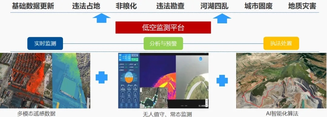 自主研發飛燕遠瞰?Farsight大型低空無人值守監測系統,可以同步采集正射、傾斜/全景、點云、高光譜以及熱紅外影像,構建低空遙感信息數據“全景化”,憑借低成本、高續航的優勢,實現基于機庫無人值守遠程操作的航測、監測與全域化覆蓋等應用。