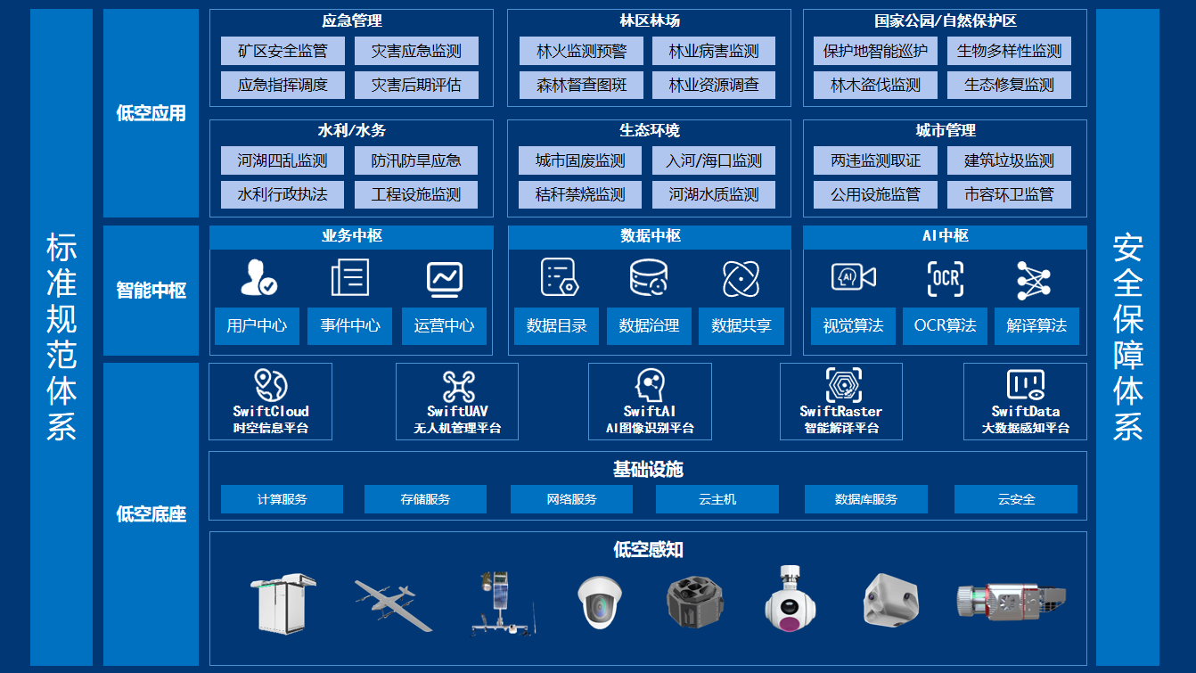 在低空經濟快速發展的背景下,再次自主研發“遠瞰”無人值守系統,能夠實現無人機自動巡檢、自動充電、異地部署、遠程規劃指揮、數據自動回傳等功能,滿足城市區劃范圍內山水林田湖草沙全場景作業需求。通過整合物聯網智能設備和大數據分析,運用自研發的Swift4D數字孿生時空智能平臺,能夠優化資源配置,提供全要素、全場景、全生命周期的智慧化數字孿生應用一站式服務。