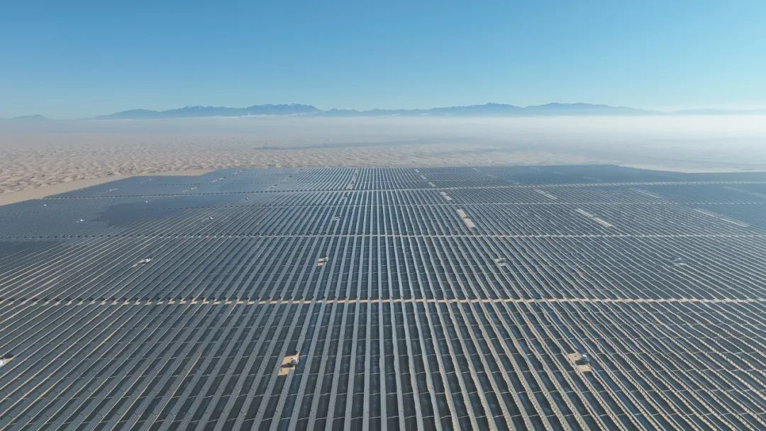 現(xiàn)在,走進(jìn)清潔能源外送基地,仿佛踏入了一片“藍(lán)色海洋”。一排排光伏板鱗次櫛比,源源不斷地發(fā)出綠色電能。“沙戈荒”化身追風(fēng)逐日的新能源大基地,成為了實實在在的“能源綠洲”。“板上發(fā)電、板間種植、板下修復(fù)”,這種集新能源發(fā)電和生態(tài)環(huán)境修復(fù)于一體的沙漠治理模式,讓“綠水青山就是金山銀山”變?yōu)楝F(xiàn)實,更為全球沙漠治理提供了可復(fù)制、可推廣的經(jīng)驗。