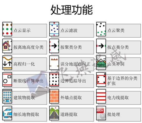 P3C是飛燕航空遙感技術有限公司開發的具備自主知識產權的機載激光雷達點云數據處理軟件,是Point Cloud Cluster & Classification的縮寫,具備海量點云讀寫、顯示、濾波、聚類、分類、矢量導出、批處理等功能(見圖 1)。P3C的主要優點在于: