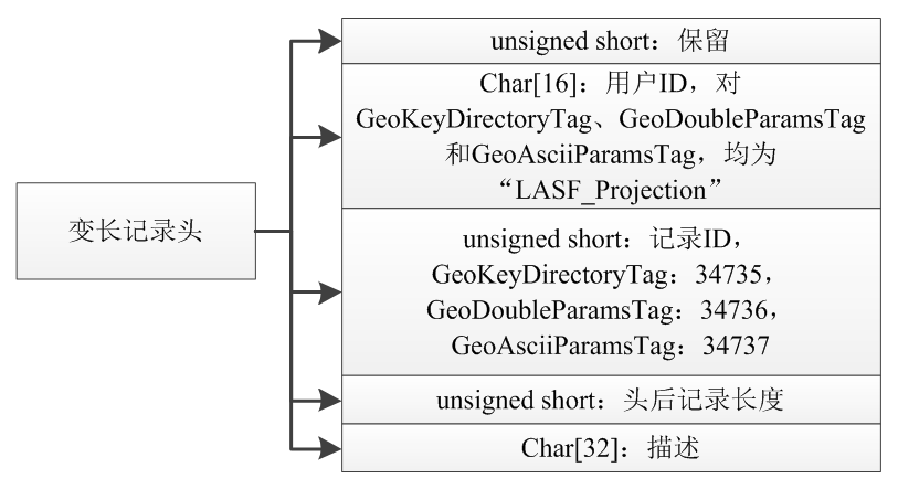 圖 1 LAS存儲(chǔ)坐標(biāo)系信息的文件結(jié)構(gòu)圖